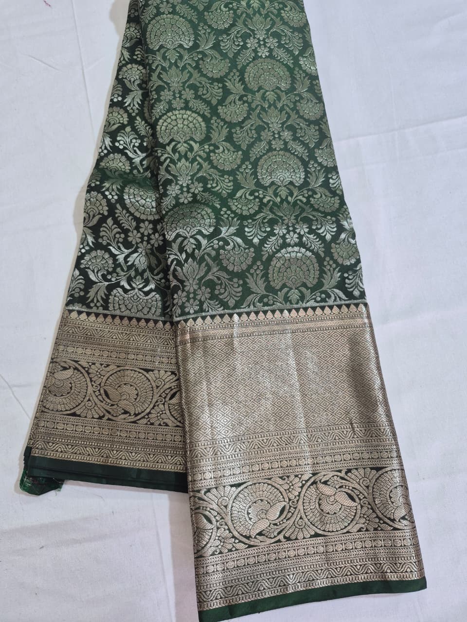 Elegant Green & Silver Saree with Subtle Zari Border