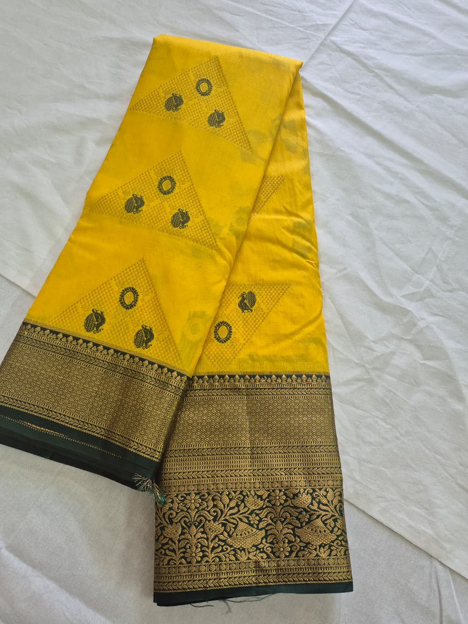 | Border | Green Contrast with Gold Zari Work |