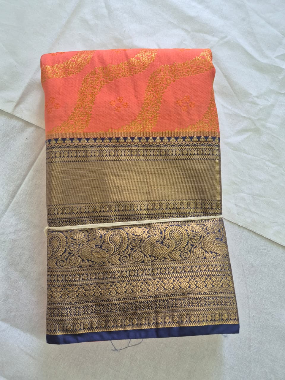 Elegant Peach Silk Saree with Rich Gold Zari Border & Pallu