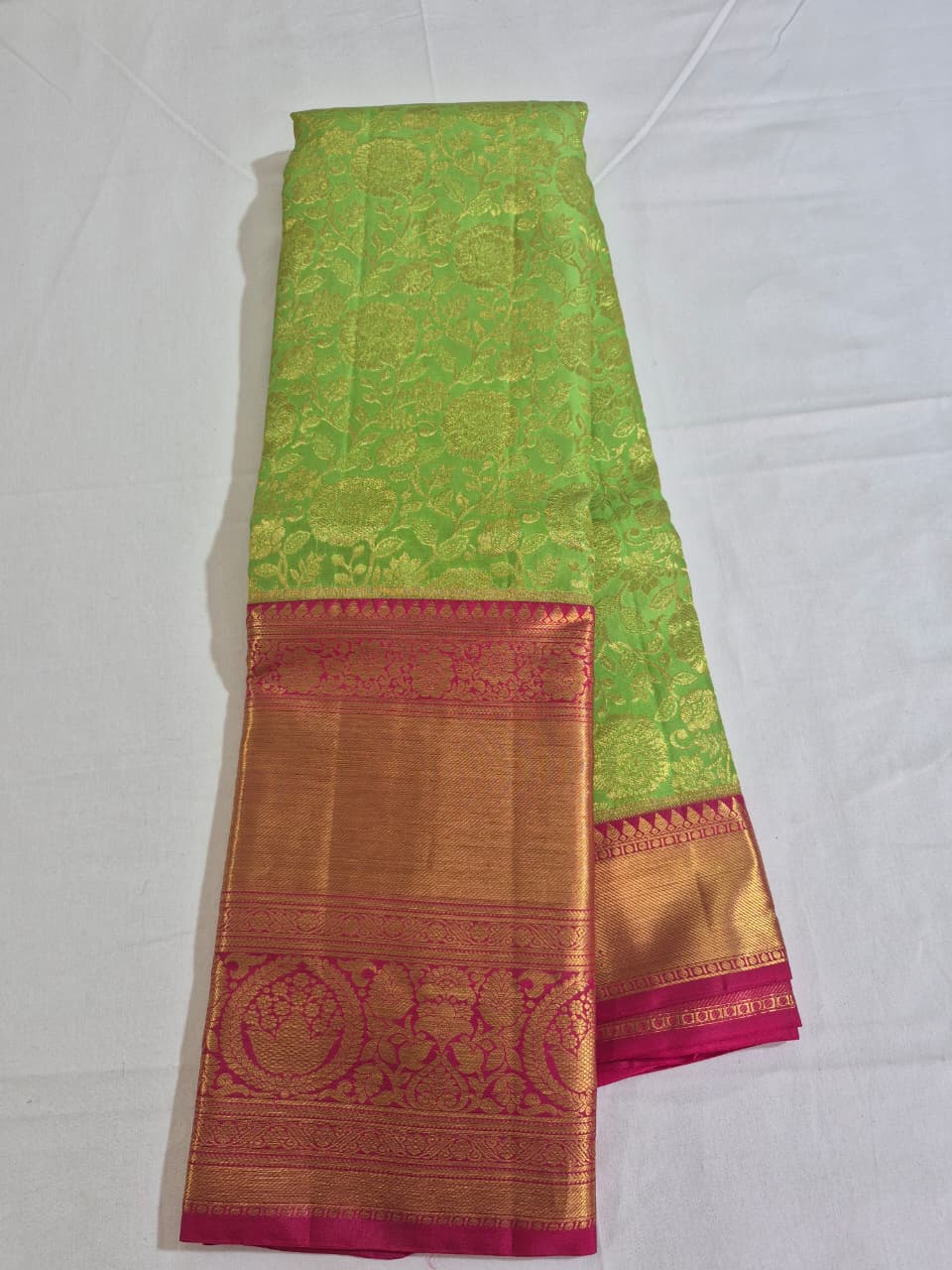 Traditional Parrot Green & Red Silk Saree with Rich Gold Zari Border