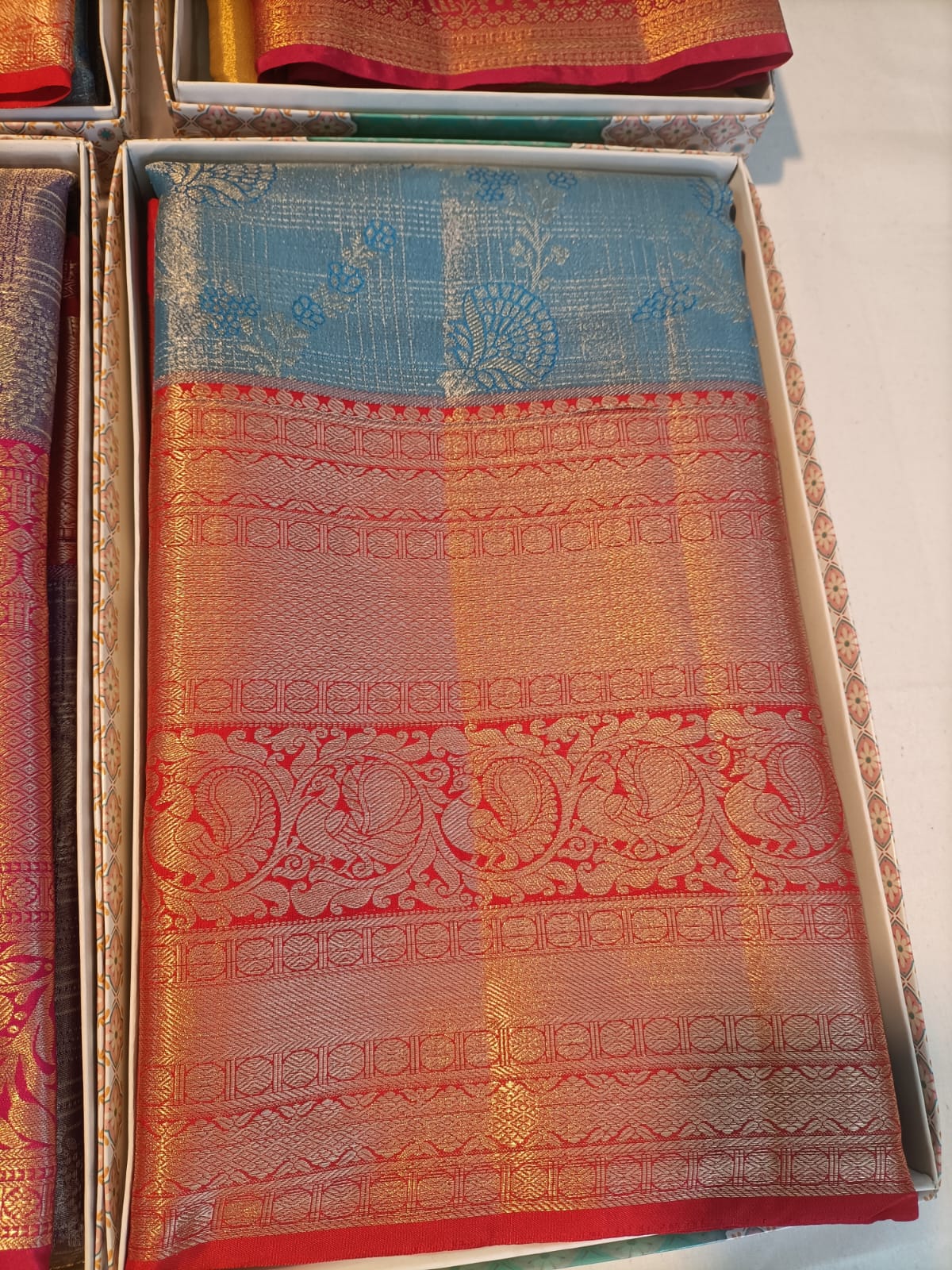 Soft silk saree in blue with subtle design, ideal for office and casual events.
